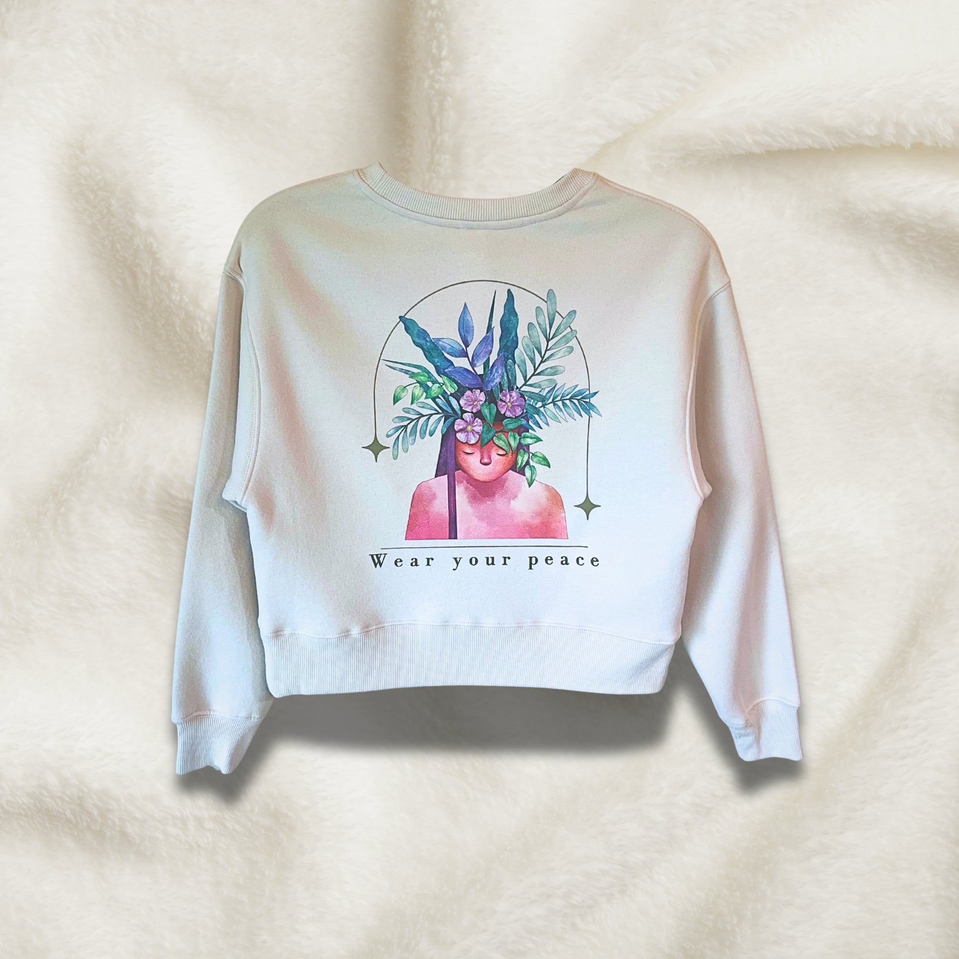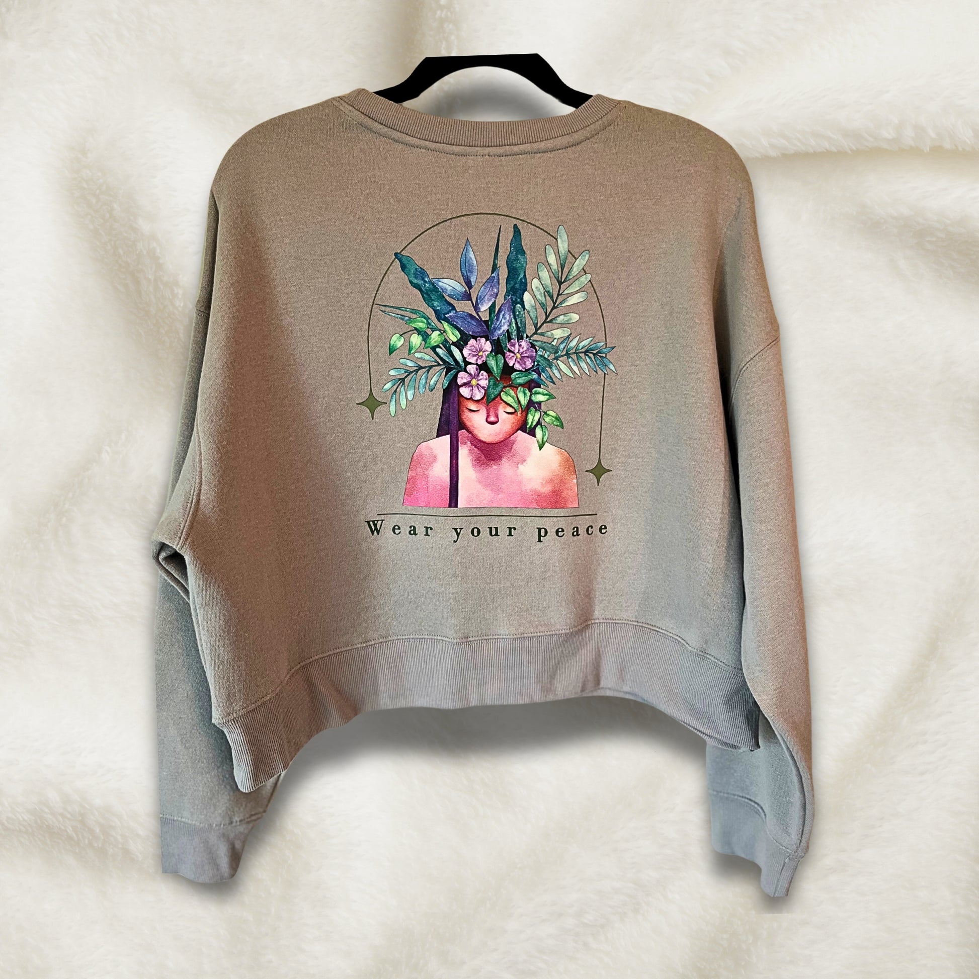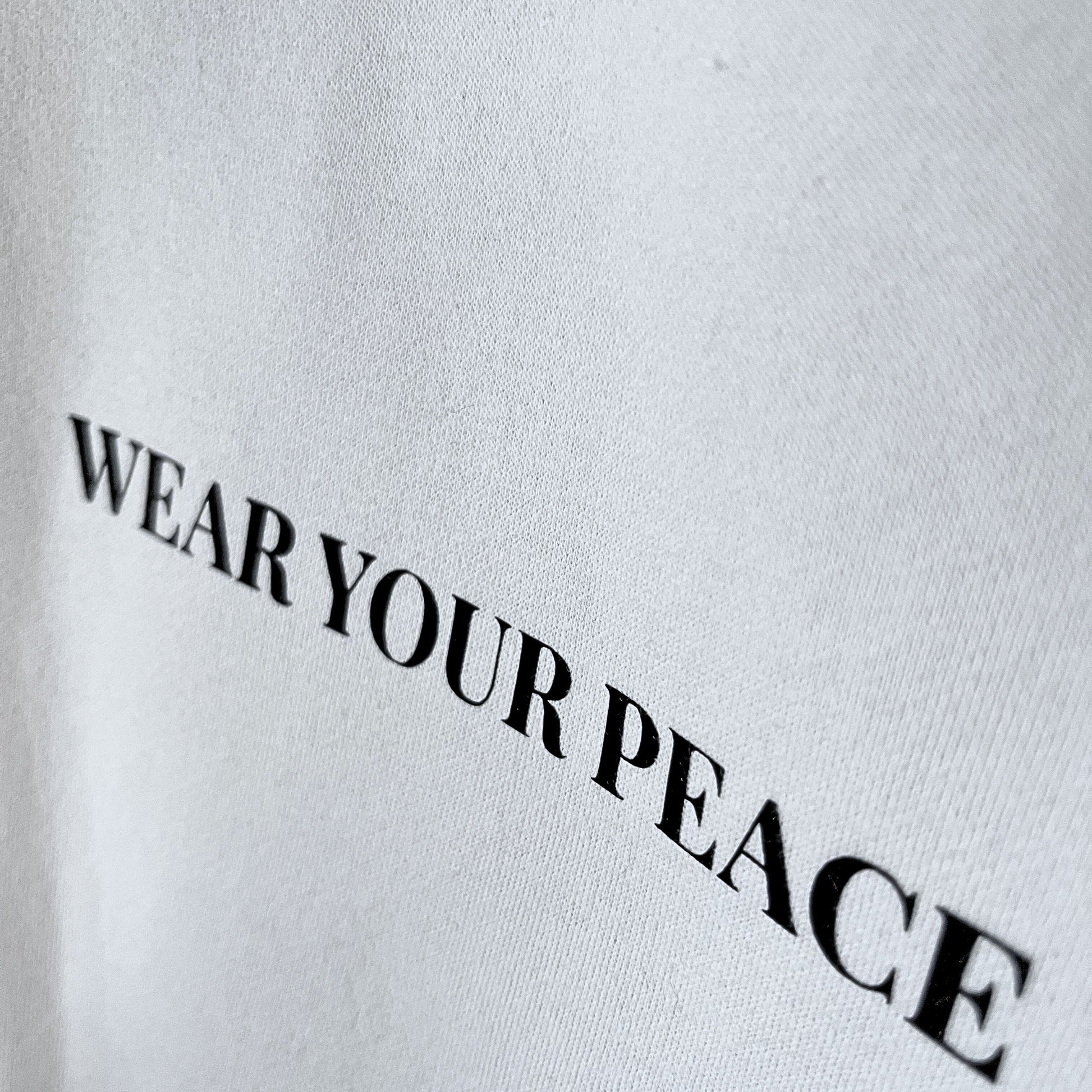 Each word, image, and symbol was hand-placed using heat vinyl — carefully chosen to bring comfort, reflection, and strength. The message “my Mind, my Power” and the phrase “Wear your peace” were pressed with purpose, to remind you of the power of calm presence.