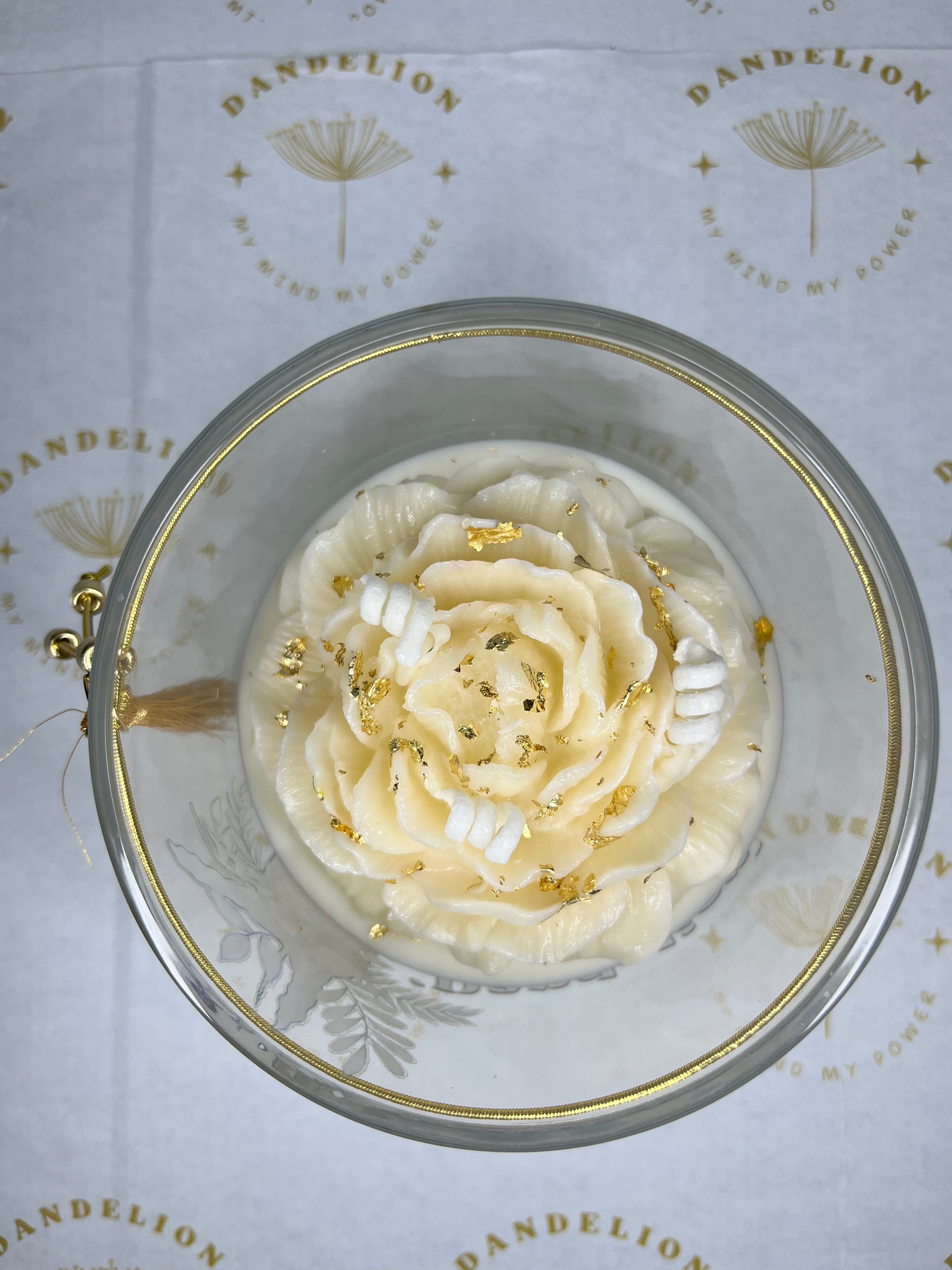 At its heart lies a large sculpted peony, handmade in soft ivory wax and carefully finished with touches of real gold leaf ✨, adding a touch of quiet luxury. The fragrance Mother Ocean evokes the fresh, serene feeling of standing by the sea — grounding, gentle, and refreshing 🌿.