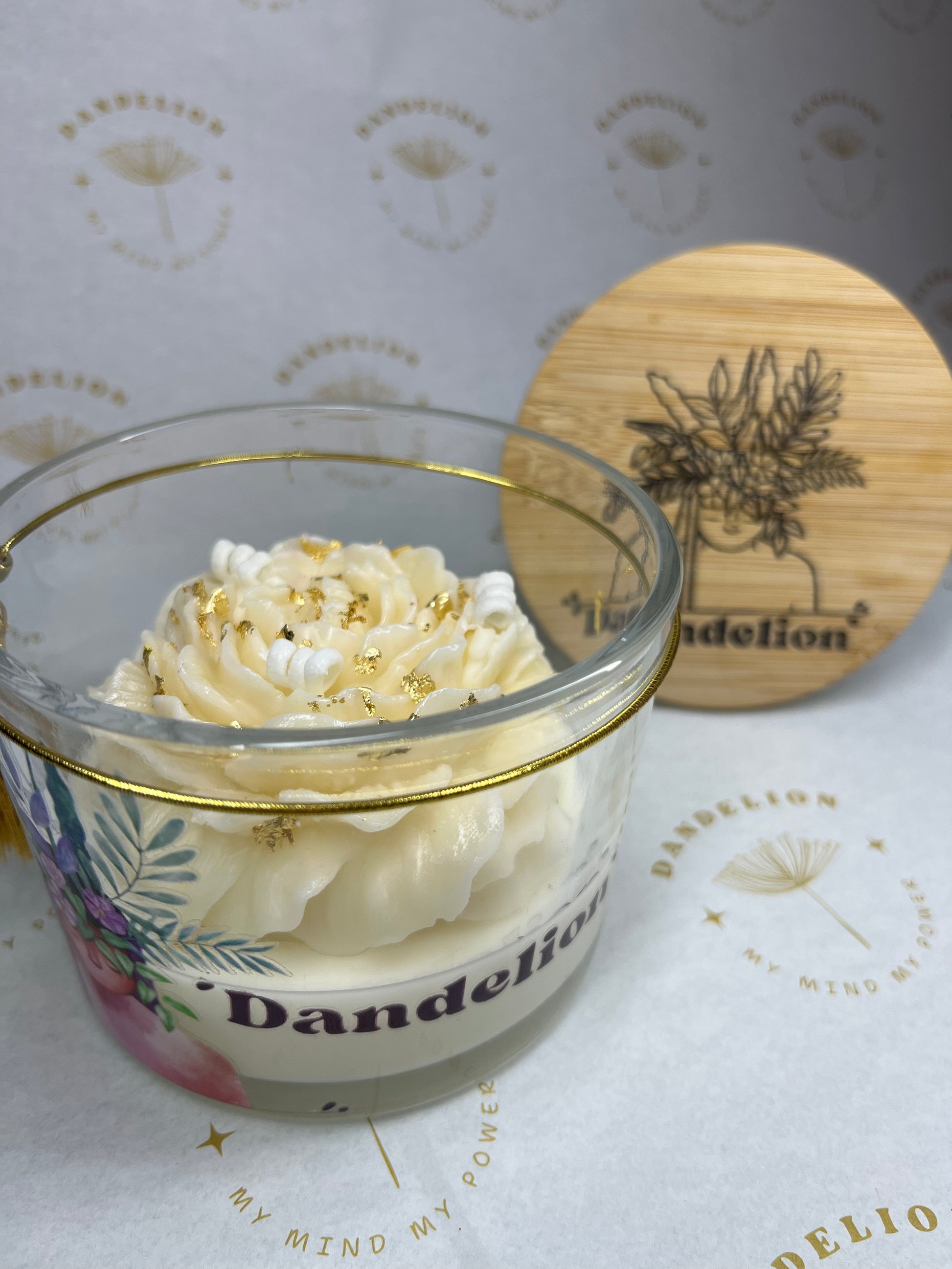 A delicate wave of calm and elegance in a jar 🌊✨. This 12oz candle is hand-poured with a natural blend of coconut, soy, and beeswax — a clean and comforting base for the beauty that blooms inside.