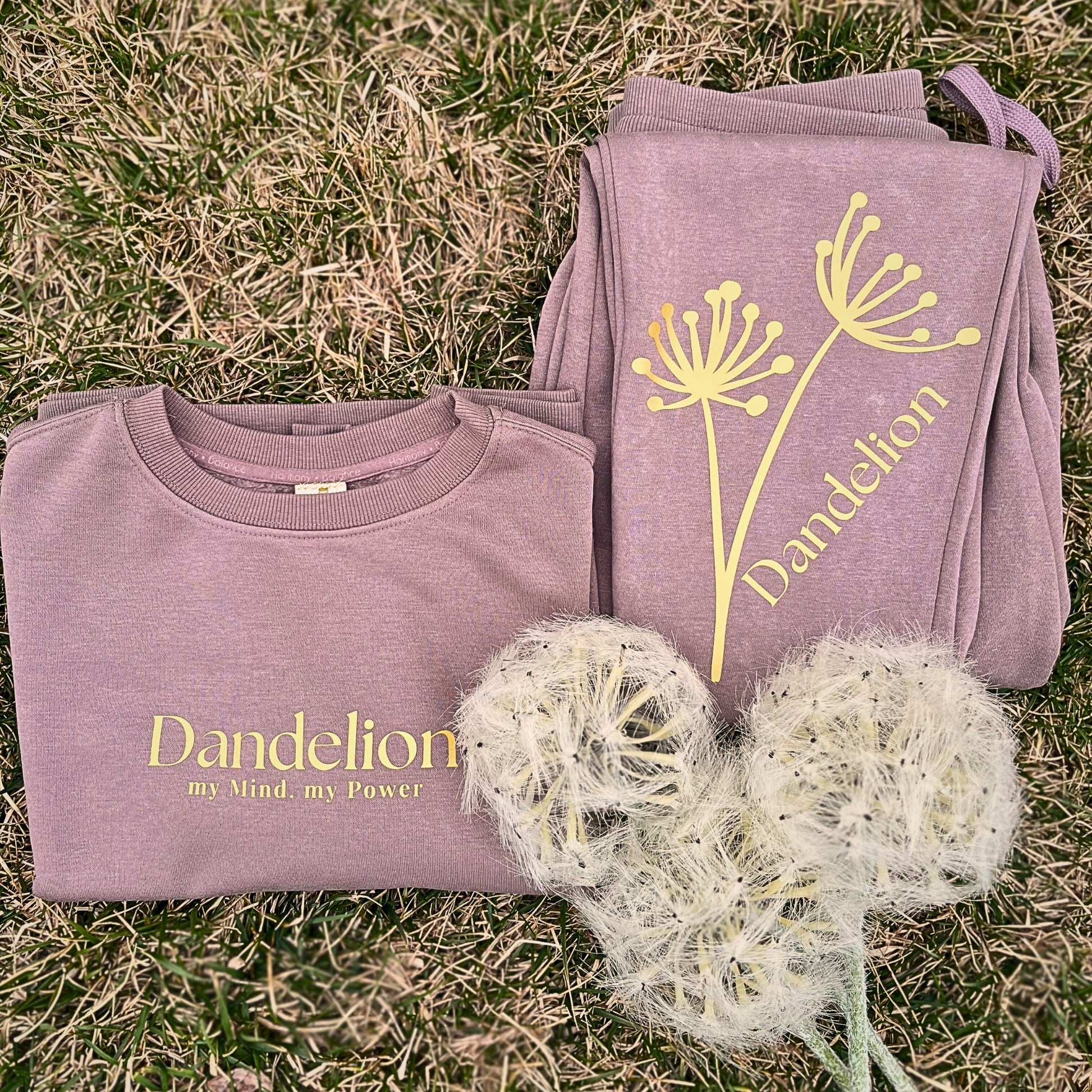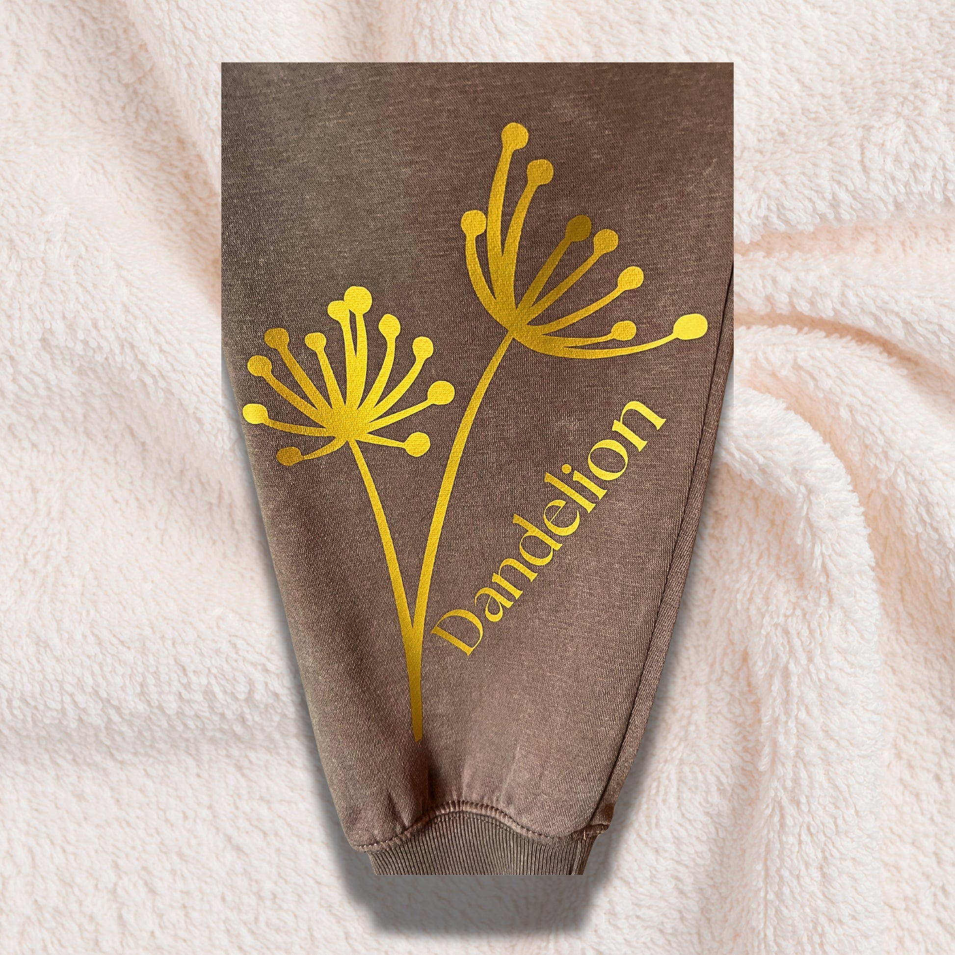 Every print in this set was chosen and applied with intention: from the empowering “my Mind, my Power” phrase to the bold golden dandelions that bloom across the leg. Using heat press and carefully selected vinyl, each detail was placed to inspire calmness and strength.