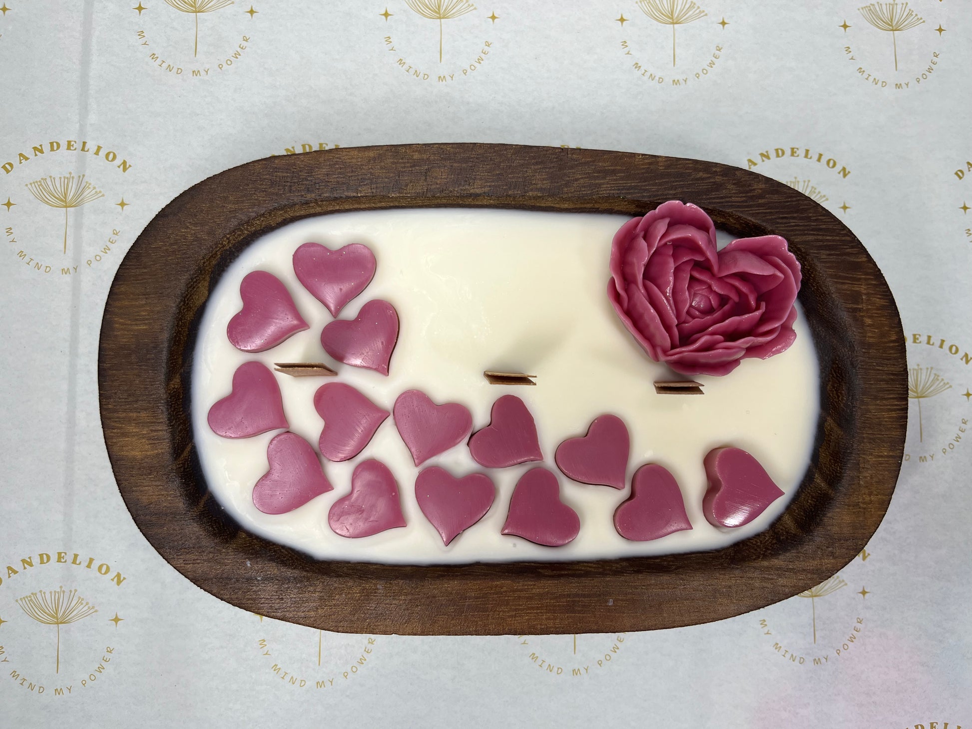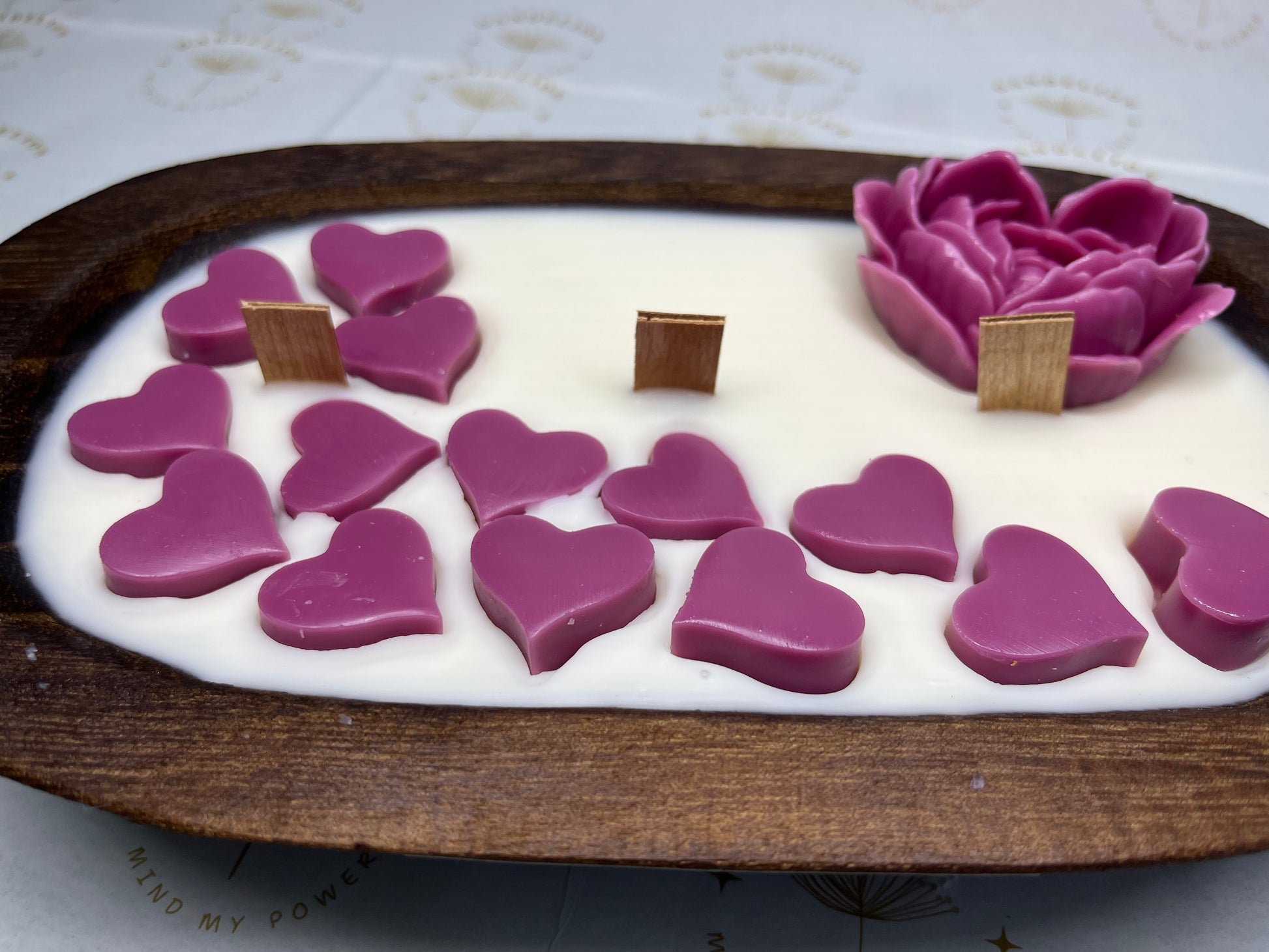 Fall in love with every detail of this handcrafted candle ❤️ — a unique piece where delicate purple hearts 💕 seem to melt toward a blooming peony flower 🌸 shaped like a heart.