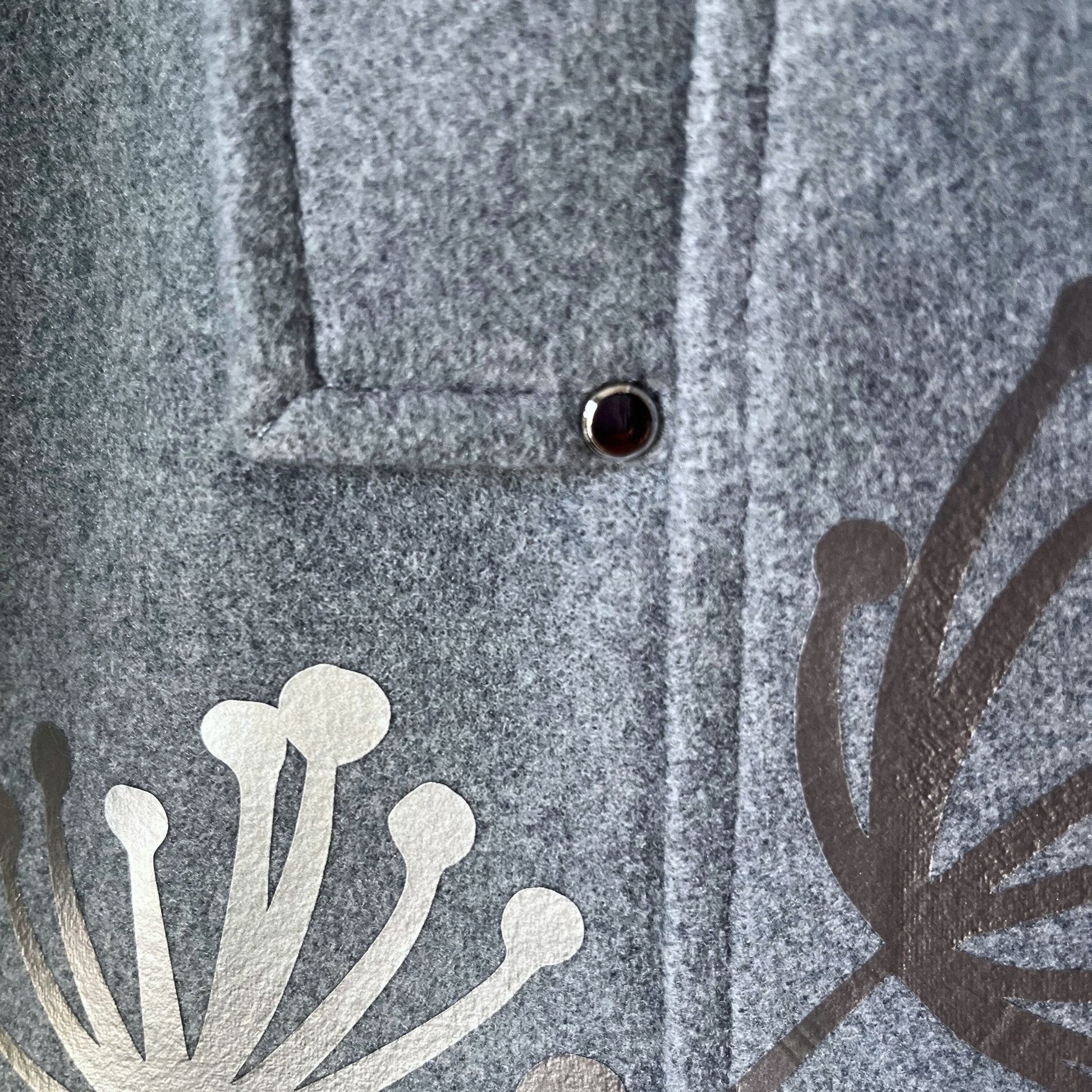 Let the serenity of silver guide your steps. The Moonlight Coat is a one-of-a-kind piece in a soft gray shade, with a felt-like interior that feels warm and comforting. Its structured yet cozy design makes it perfect for chilly days when you want to feel both grounded and at ease.