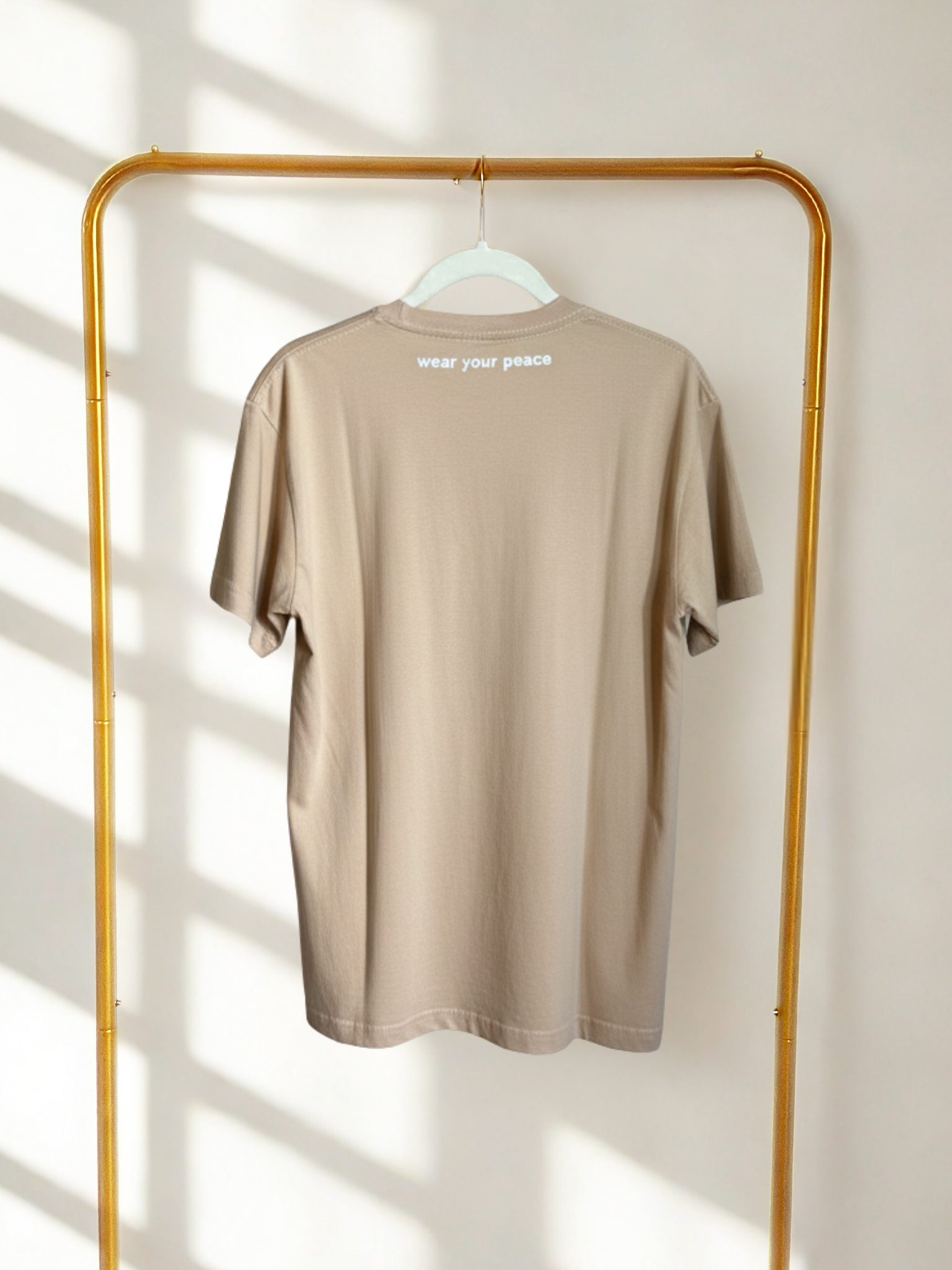 The Rooted Peace Tee is crafted from premium Peruvian cotton, chosen for its light weight, natural drape, and the gentle touch that feels like a quiet embrace. Each piece carries the velvet-finish DANDELION design on the front, applied carefully by hand for a soft, textured feel.