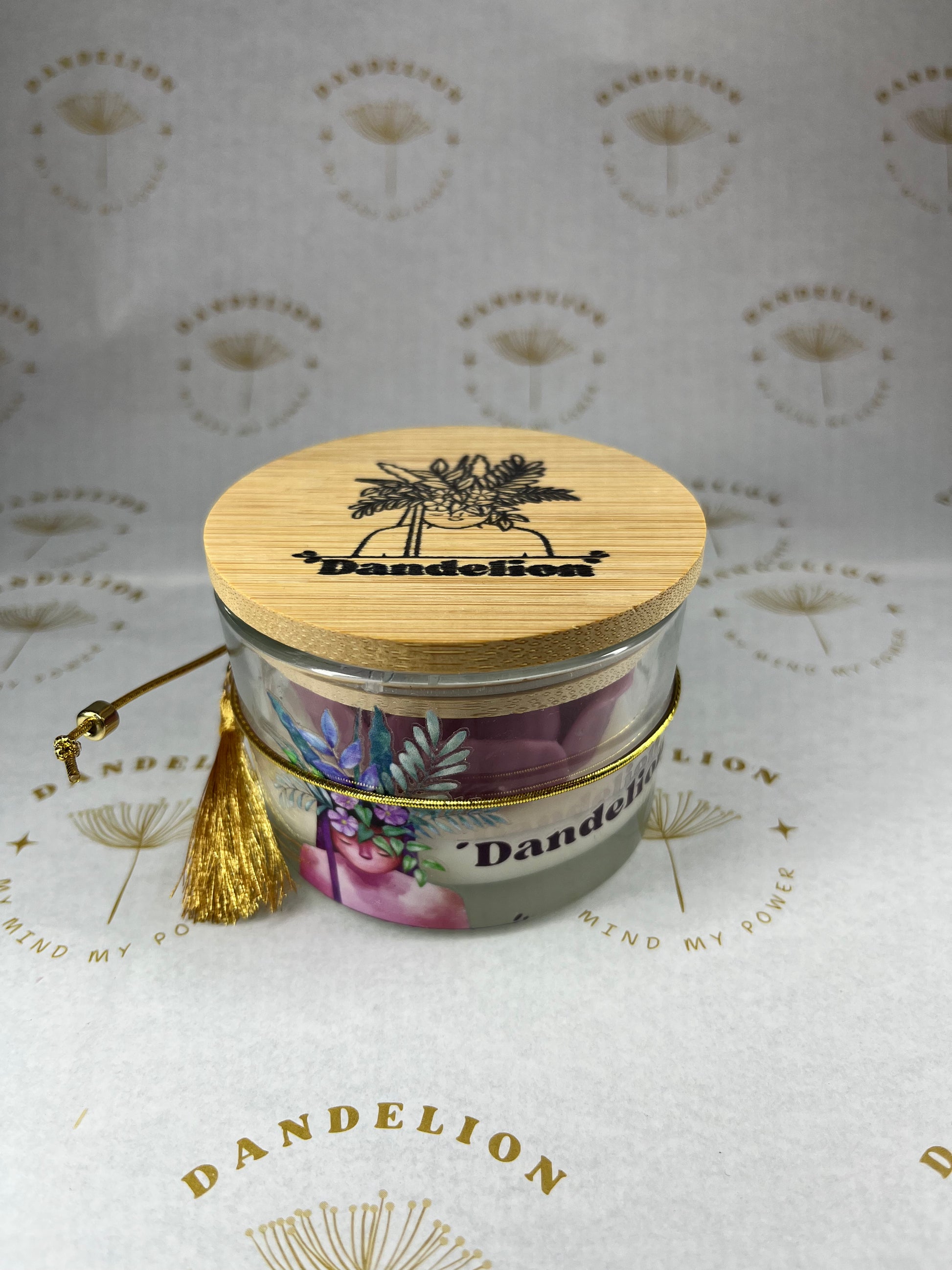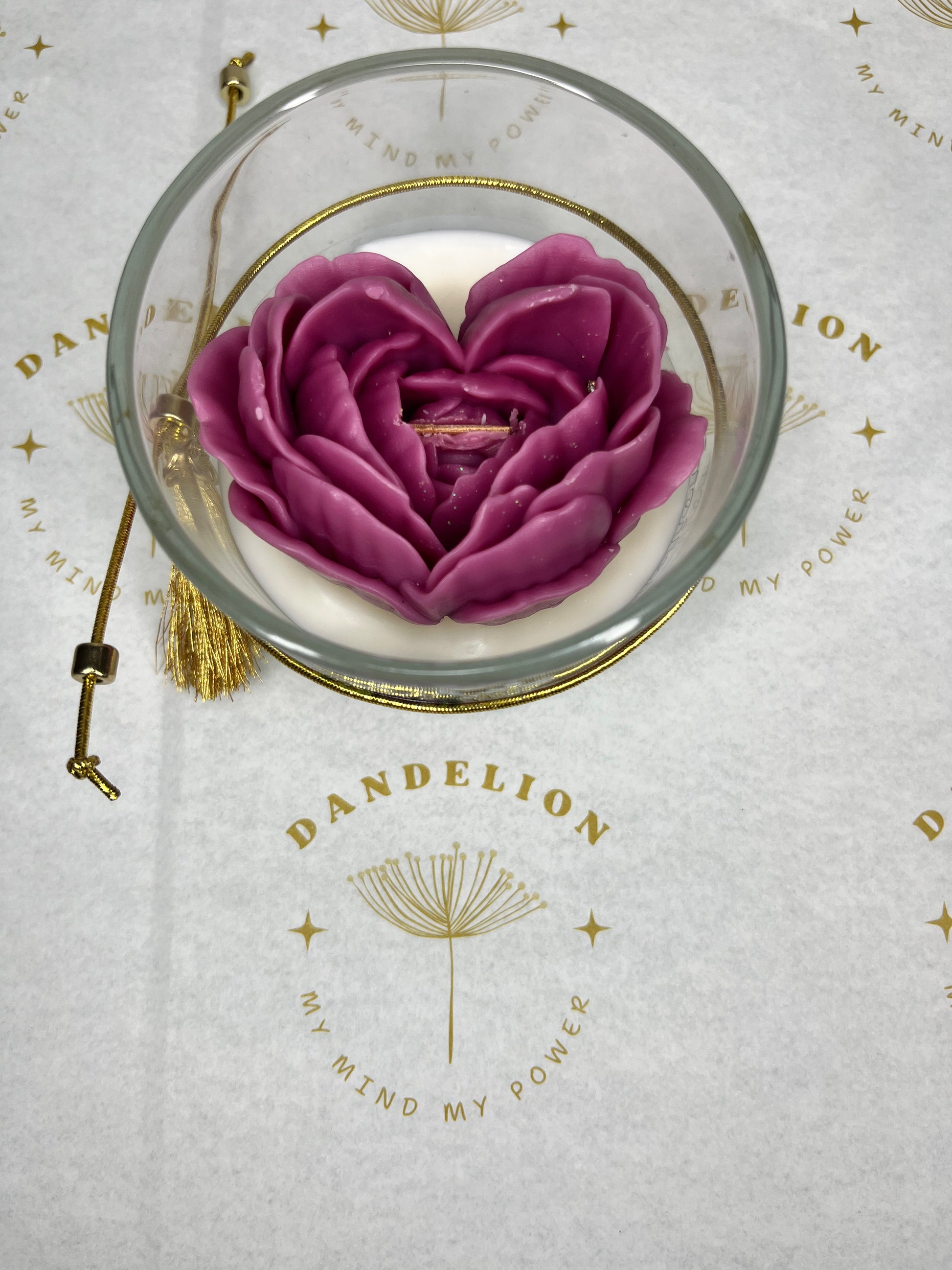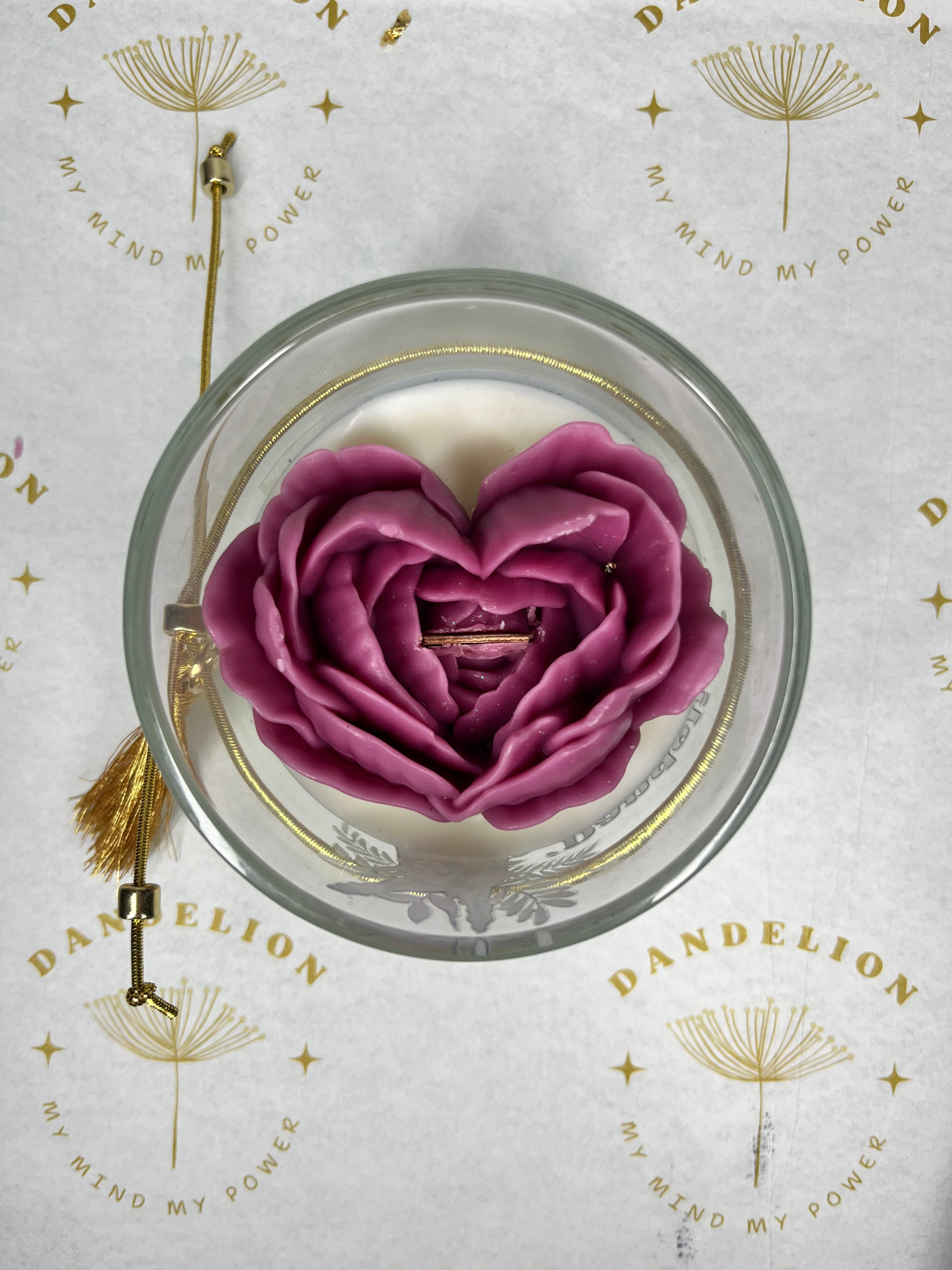 A sweet little treasure in a 4 oz glass jar, Blush Heart carries the scent of summer with every spark ✨. Topped with a handcrafted peony in the shape of a heart 💗 and poured in natural wax, this candle blooms with soft, sculpted petals in a deep fuchsia hue — bold yet gentle, like a warm embrace.