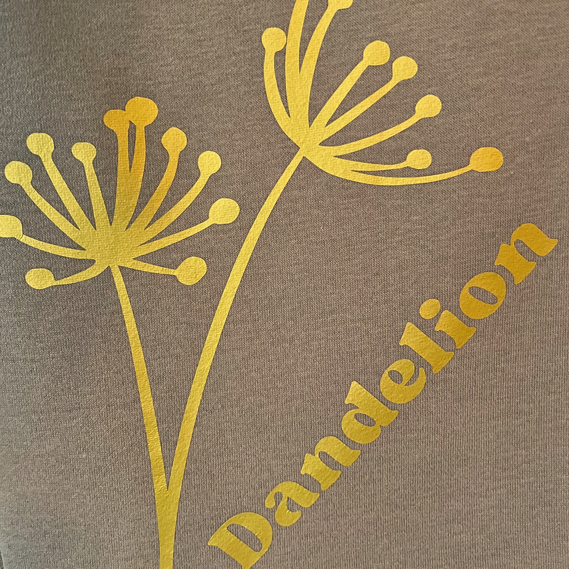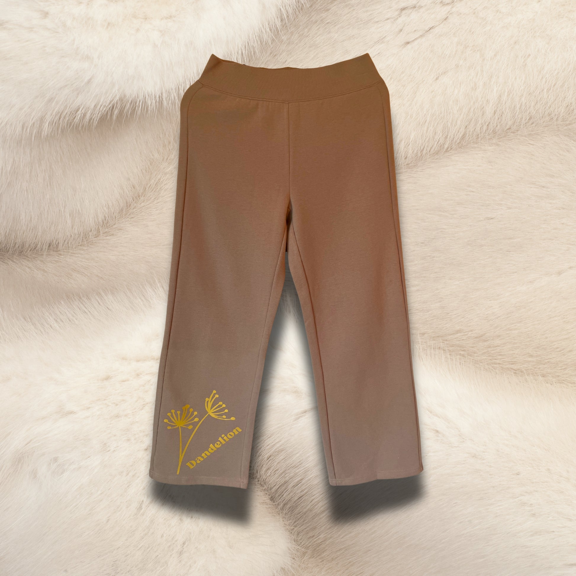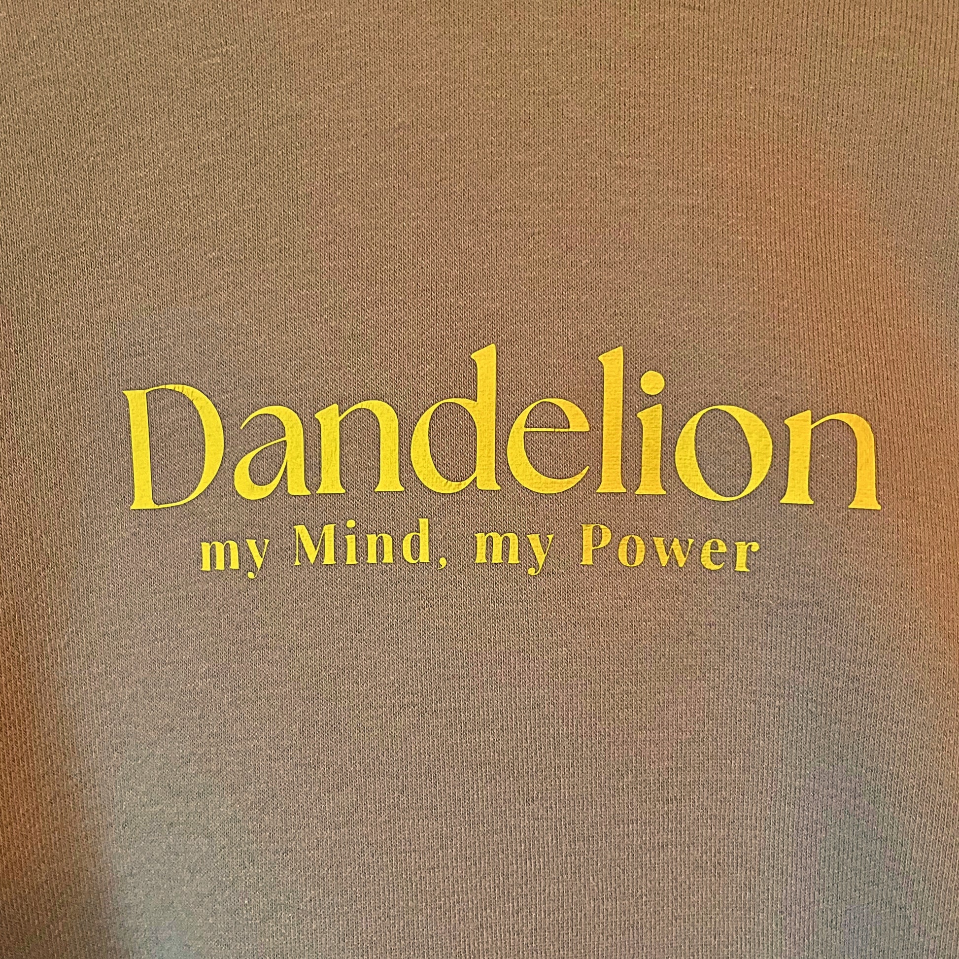 The hoodie features a powerful vinyl message on the front: “Dandelion. my Mind, my Power” and on the back, a full-color DTF design with the phrase “Wear your peace”, carefully placed by hand. The matching pants also carry golden dandelions on the leg, a quiet symbol of resilience.